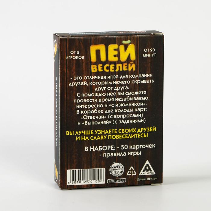 Купить игра для компании "пей веселей" 50 карт от 180 руб. с доставкой до пункта выдачи в Лисках. Интернет магазин ДекаМаркет. Оплата при получении.
